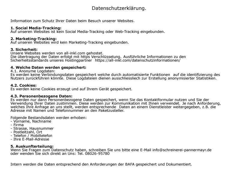 IMPRESSUM für www.schreinerei-pannermayr.de: